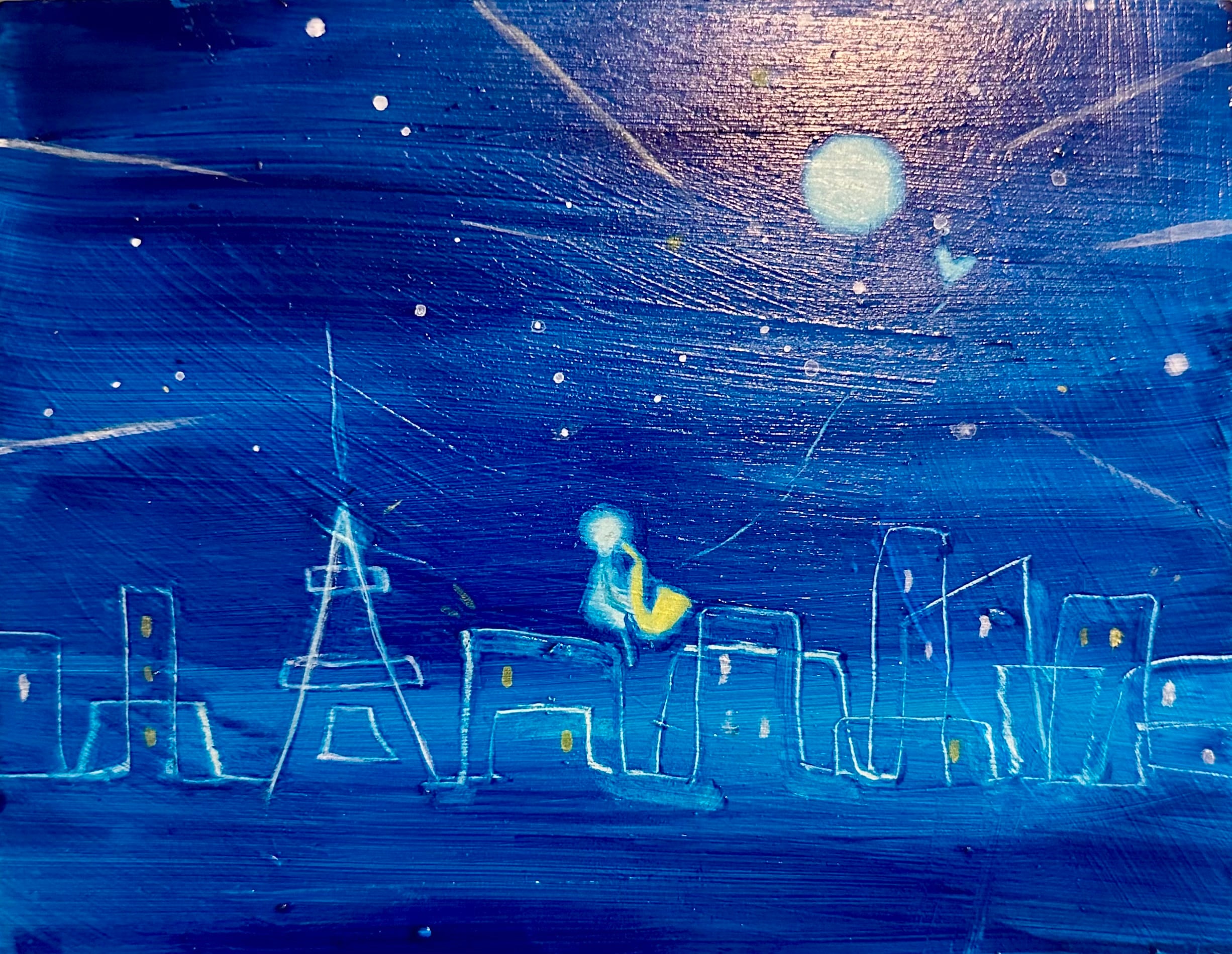 夜の街に広がる静けさの中で、ひとりの存在が音を紡ぐ。空へと溶けていくその響きは、孤独と自由、そしてどこにも属さない心の在り方を映し出している。